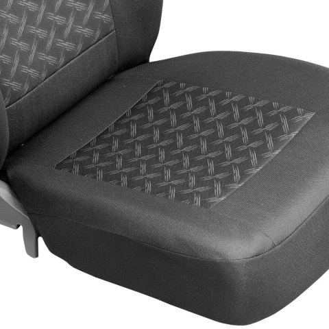 Stosowane materiały znacznie przewyższają jakością materiały konkurencji.W miejscach bardziej obciążonych i narażonych na przetarcia stosowany jest materiał trójwarstwowy (pianka dodatkowo wzmocniona podszewką -siatką).Bardzo wytrzymałe pokrowce do samochodów dostawczych, bus oraz van.